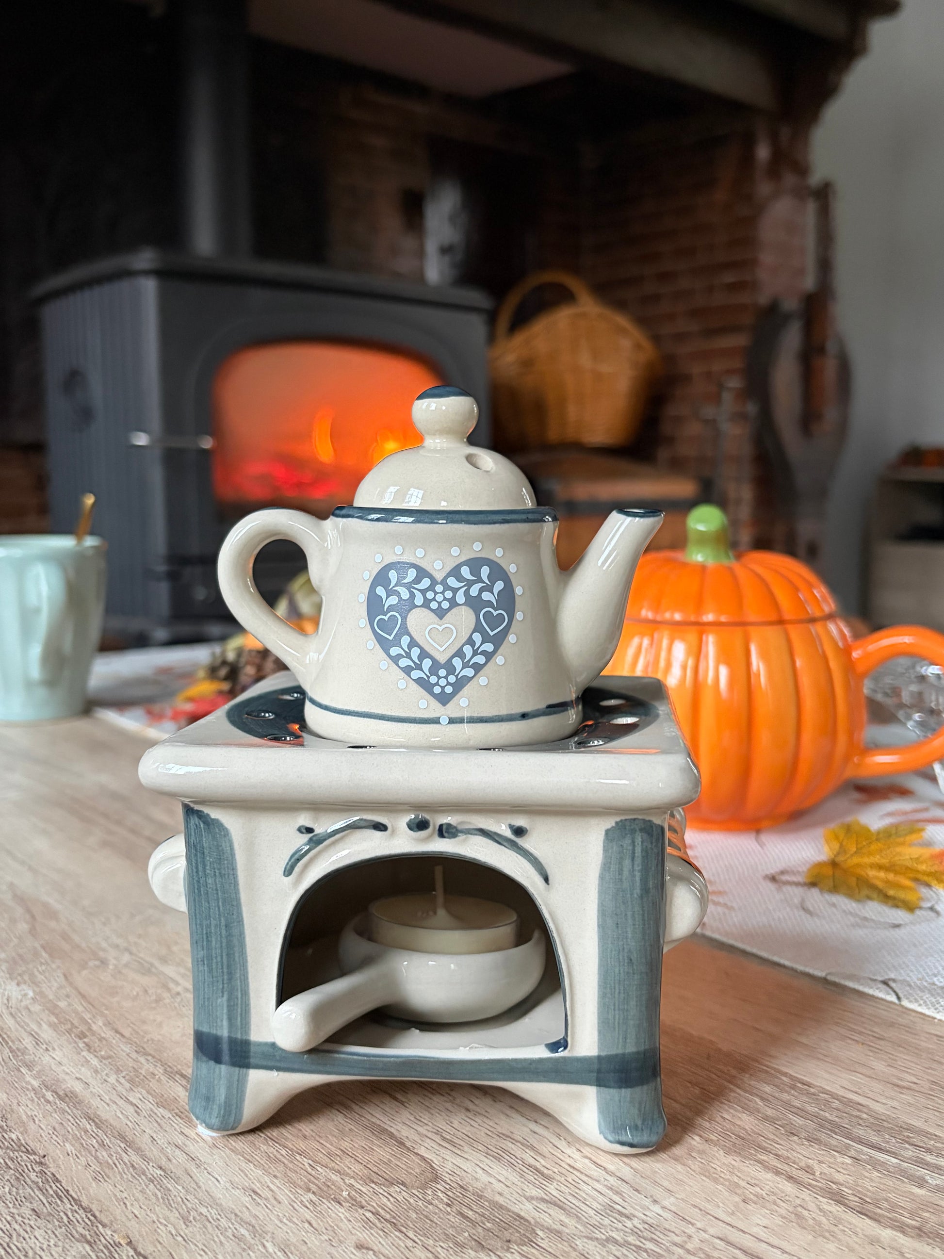 Élégant diffuseur en céramique pour fondants parfumés, au design raffiné inspiré d'un service à thé.