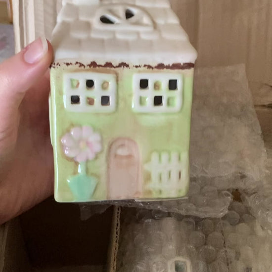 Laissez-vous envoûter par la fraicheur du printemps avec cette jolie maison à poser, en céramique verte. Ajoutez des piles et laisser la s'illuminer dans la nuit.